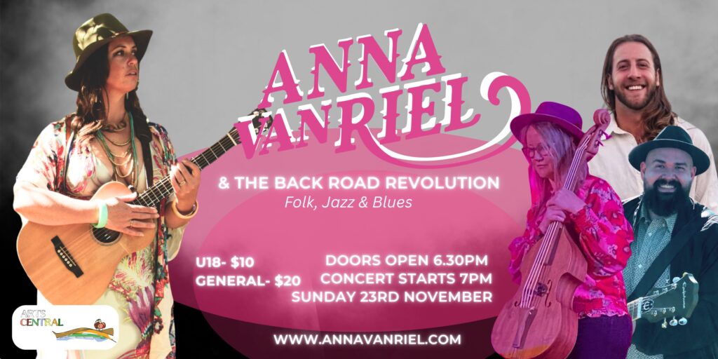 To celebrate her upcoming 7th studio album, van Riel is bringing her band, The Back Road Revolution, to the Bannockburn Hall this November 23rd.